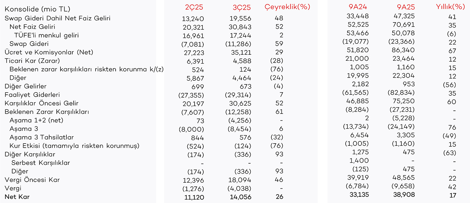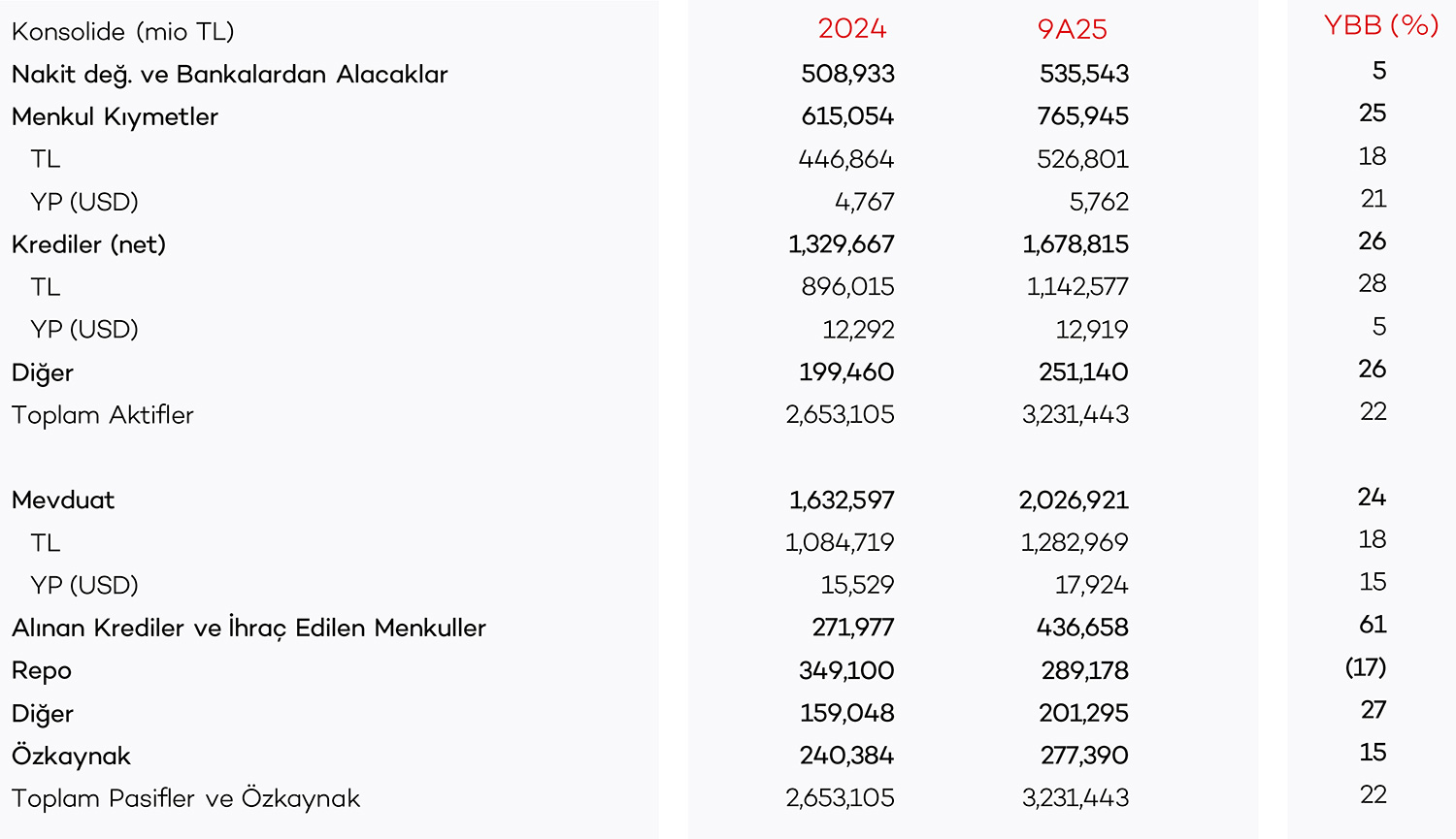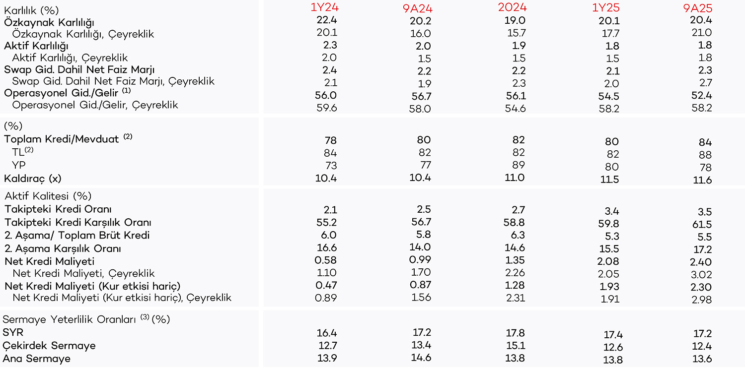 (3) BDDK düzenlemeleri hariç paylaşılmıştır. Düzenlemeler dahil sermaye yeterlilik oranında menkullerin gerçeğe uygun değerleme farkları ve risk ağırlıklı kalemler hesaplamasında 2024 için 26.06.2023 döviz kuru, 2025 yılı için ise 28.06.2024 döviz kuru dikkate alınmıştır